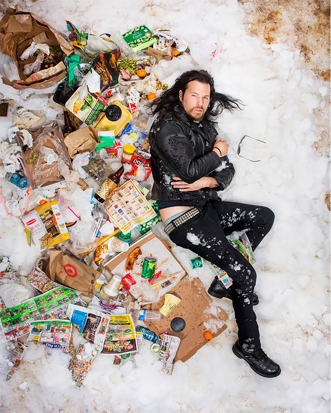 We all know that pollution is a problem worldwide, but only a few people know how much trash we make daily. Gregg Segal, a photographer from California, wants to show how serious this problem is by taking photos of people lying in their weekly trash. His ongoing project, which he cleverly calls "7 Days of Garbage," tries to show people from different social classes to reach the most people.